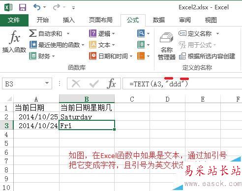1、如圖,在Excel函數中如果是文本,通過加引號把它變成字符,且引號為英文狀態下輸入。