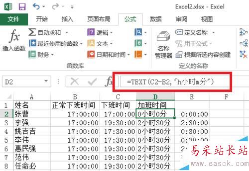 1、如圖,求加班時間,然后把時間轉化為自己想要的格式。