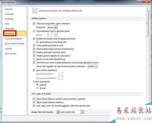 2、在彈出的Excel選項對話框中單擊“高級”。
