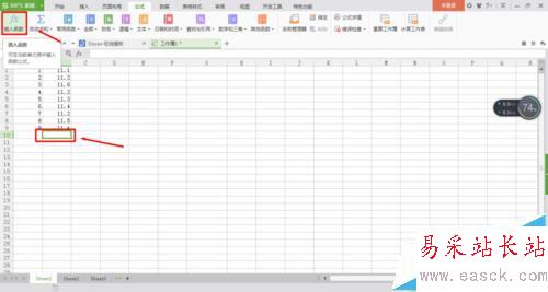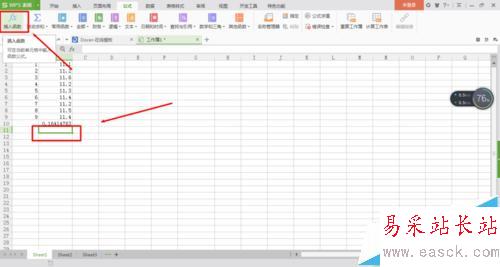 2、開始處理數據時,將光標放在B10,然后可以看見界面左上角有一個【插入函數】選項,點擊【插入函數】