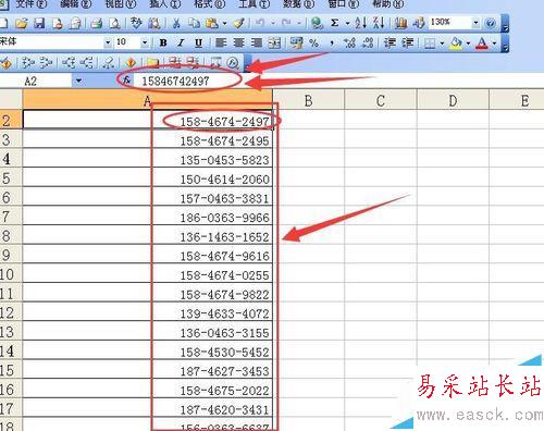 3、這是經(jīng)過自定義設(shè)置后的手機(jī)號碼顯示形式 在編輯欄中的數(shù)字和單元格中顯示的數(shù)字是不相符的 可以知道 符號“-”只是格式 而不是實際的內(nèi)容