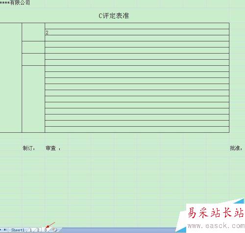 1、如下圖示,我們有很多時候需要在工作薄不同工作表中修改或增加相同內容在相同位置。如此表我們需要增加表裝潢與審批欄。