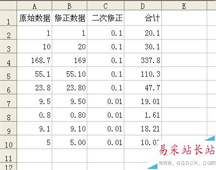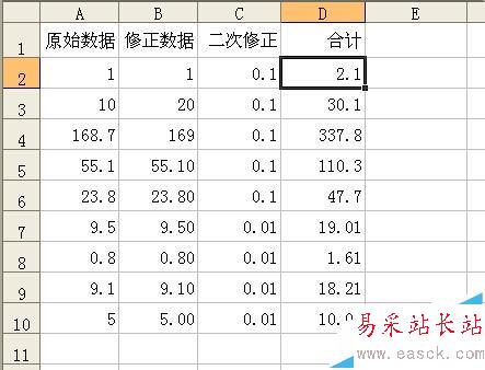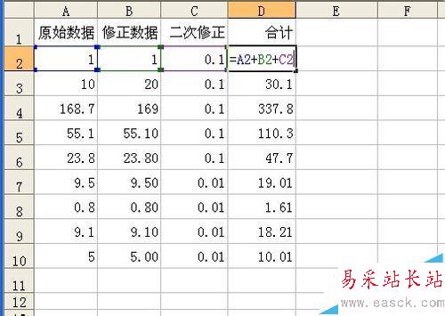 1、拿個基礎例子說明了,表中前三列加起來,用公式計算得出第四列合計。目前數據是正確的。