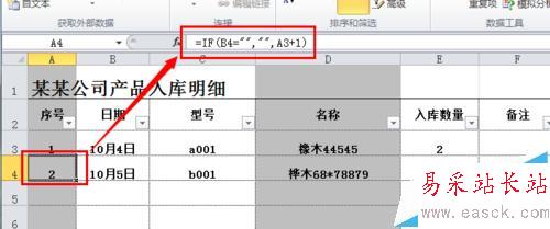 A4單元格中輸入此公式:=IF(B4="","",A3+1)