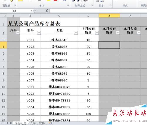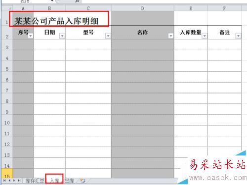 1、先在同一工作簿中作: 庫存匯總、入庫、出庫  三個表格。