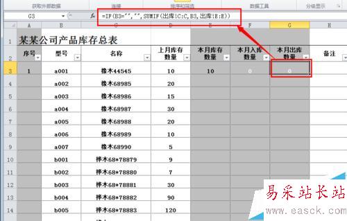 G3單元格中輸入此公式: =IF(B3="","",SUMIF(出庫!C:C,B3,出庫!E:E))