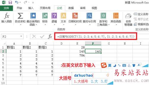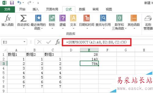 公式=sumproduct(A2:A8,B2:B8)可轉化為