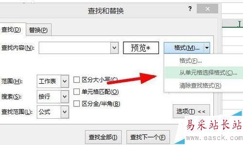 3、接著我們在彈出的查找框內點擊“選項-設置查找的格式”。