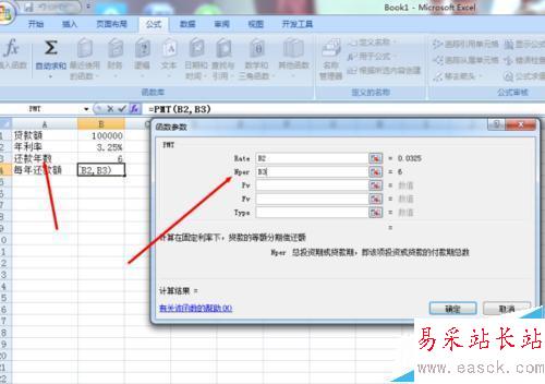 4、接下來的是Nper欄,這里需要輸入的是B3,指的是需要還款的總期數,這里需要的是還款6次,總共是6年,但是如果是要按月還款的話就是需要乘以12,因為每個月都需要還款。