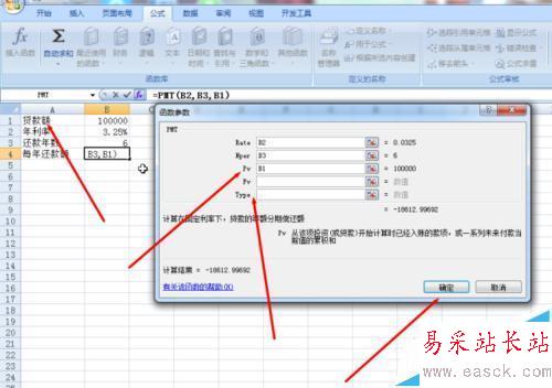 5、參數Pv欄輸入的是B1,這里指的是貸款的額數,而Fv一般是為0的,指的是未來值,參數Type指的是還款的時間,是在期初還是期末還款,輸入為1是期初還款,輸入為0時是在期末還款。