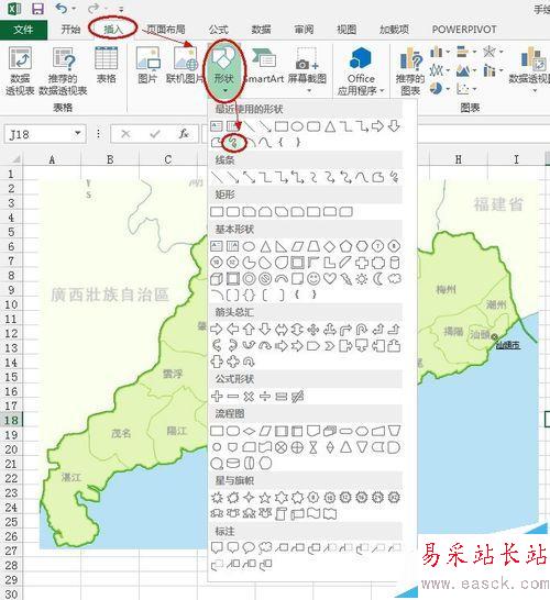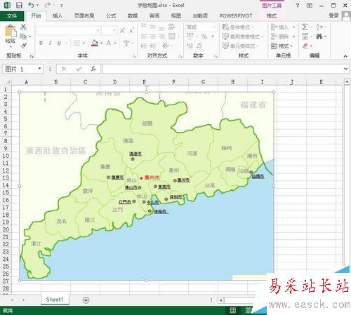 2、新建一個(gè)excel文件,插入我們下載好的地圖圖片。那我們后續(xù)將以插入的地圖作為“底板”,開(kāi)始手繪。