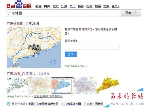 1、首先利用百度,搜尋一份廣東省的地圖(后續(xù)大家可以根據(jù)自己需要制作省份地圖,甚至全國(guó)地圖),或者你可以直接在百度地圖上截圖下來(lái)用。這里我順利找到一個(gè),我就基于這個(gè)圖來(lái)描繪。