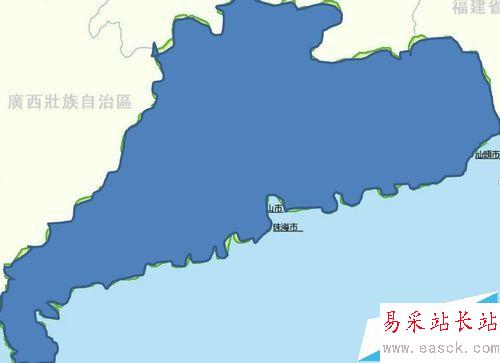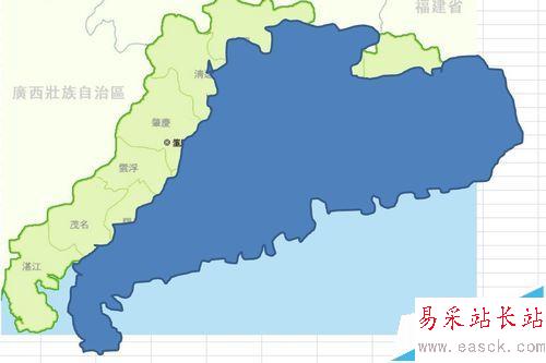 7、當(dāng)然我這里是一整個(gè)畫(huà)出廣東省全部地圖,如果要細(xì)化到廣東省每一個(gè)地市,那么你記得每一個(gè)地市是一筆勾畫(huà)完成,最后合并成的圖形就是這樣的。這樣的工程量比較大,大家要有足夠的耐心。方法就這樣了,自己也可以找自己所在省份的地圖來(lái)試驗(yàn)一下吧。