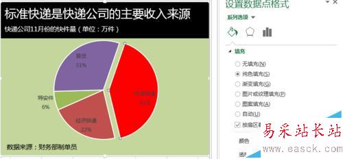 3、突出分離部分——反映表格內容,突出你想表達的觀點。設置數據點格式——填充——紅色