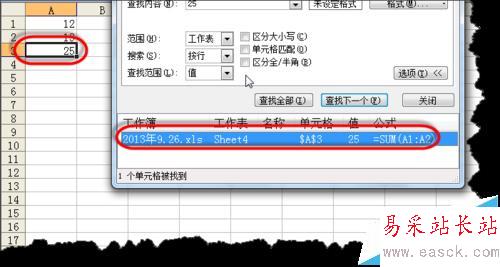6、下面我們再查找一下,是不是發現25個這個單元格是可以找到了。