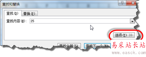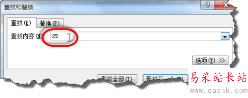 2、下面我們用“查找”的方法,查找一下“25”,ctrl+F打開“查找”對話框,在查找內容里面的輸入“25”