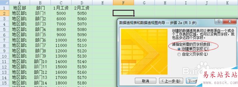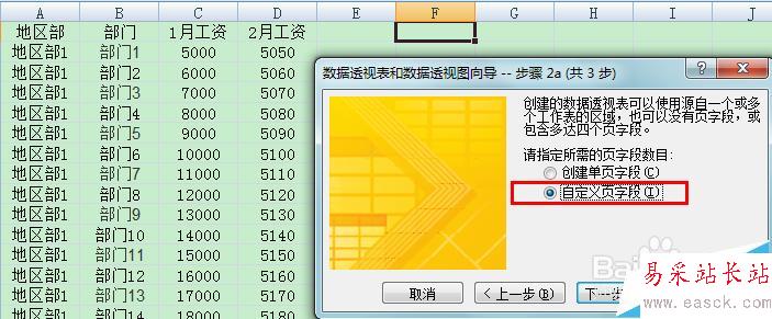 在選擇多重合并計算數據區域后,點擊下一步。如下,有兩個選項,創建單頁字段和自定義字段。這里先介紹創建單頁字段,稍后給大家展示自定義頁字段。步驟如下截圖: