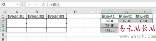 2、在F2單元格輸入=批注 然后向右向下填充公式,如果A2單元格有批注,就返回"TRUE“,如果沒有,就返回“FALSE”。