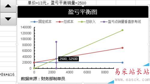 1、如圖所示,點擊窗體控件,顯示相應的單價和盈虧平衡銷量。