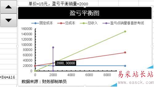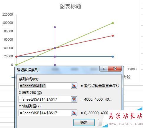 2、如圖所示,創建盈虧點銷量垂直參考線。參考線可以看做是X(銷量)=4000時的直線。