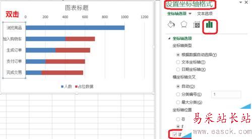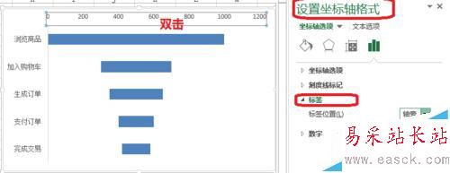 5、如圖所示,雙擊——設置坐標軸格式——標簽——無。