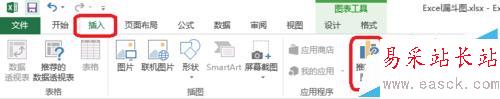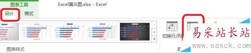 3、如圖所示,點擊圖表工具——設計——選擇數據。點擊如圖的箭頭——把占位數據調上來。