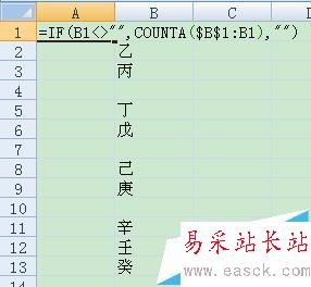 4、A1=IF(B1<>"",COUNTA($B$1:B1),"") ,此公式意思是:如果B1≠空,則A1等于B列B1開始向下累加至相應(yīng)行的非空數(shù)據(jù)數(shù)量值,否則為空。