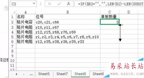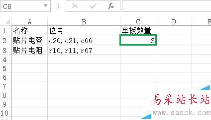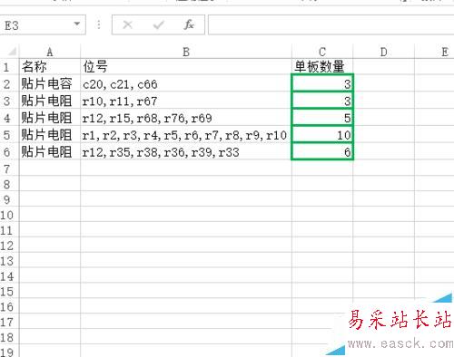 2、以下面這個表格為例,得出表格中電阻貨或電容的數量。