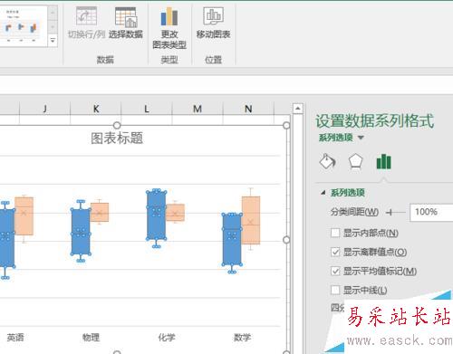 6、雙擊一個箱,Excel 在窗口右側彈出“設置數據系列格式”任務窗格,可以對單個數據系列的數據箱格式進行調整。