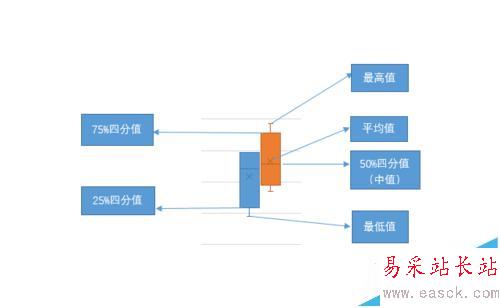 5、這里解釋一下箱型圖的構成。一個數據箱,從上至下包括:最高值、3/4 四分值、平均值、1/2 四分值、1/4 四分值和最低值。