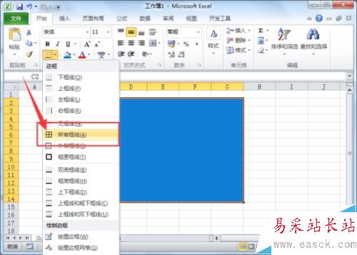 6、返回到Excel2010工作表編輯窗口,就可以看到所有添加顏色區域已經顯示網格線了。如圖所示;