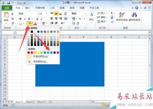 3、然后再點擊“主題顏色”選項,選擇一個喜歡的顏色填充即可。如圖所示;