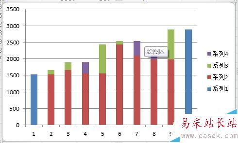 3、如下圖1選中數據,插入-柱形圖-堆積柱形圖,得到圖2所示