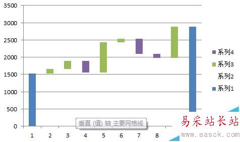 4、在圖表中選中“占位序列”,設置填充顏色為無填充,就可如圖2所示,得到基本的瀑布圖。