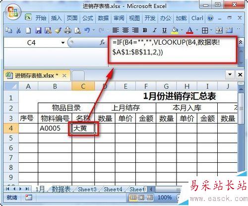 注意:一個【物料編號】只能和一個【名稱】相對應。
