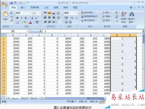 1、在工資細(xì)目的右側(cè)兩列中,交叉輸入任意數(shù)字(主要是為了后面的“空位”空值,所以數(shù)字可任意輸),然后選中交叉的四個單元格,雙擊右下角的“填充柄”,這樣就能夠使這種格式一直填充至工資表的結(jié)束行(如圖1、圖2)。