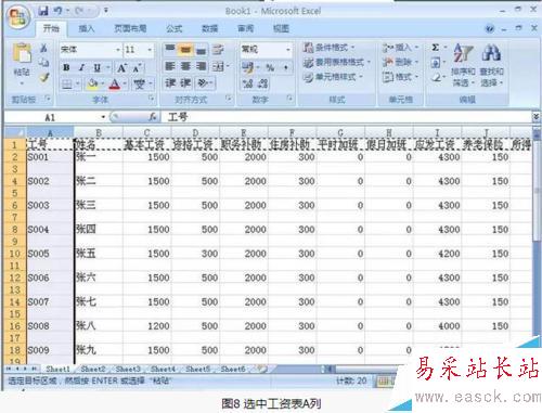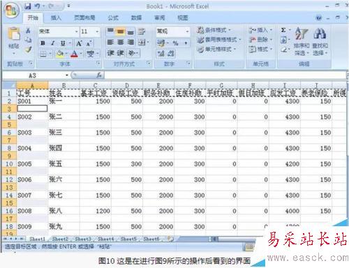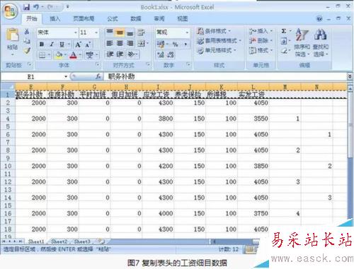 4、復(fù)制表頭的工資細(xì)目數(shù)據(jù)(如圖7所示)。