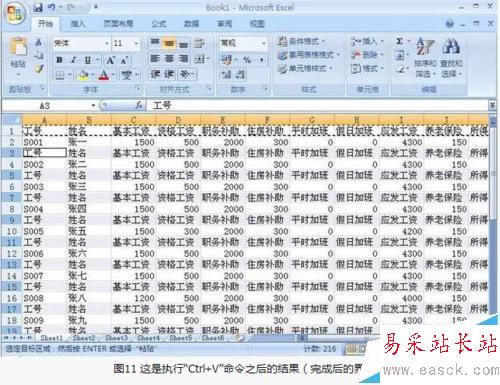 7、這時執(zhí)行“Ctrl+V”命令,這時工資條就算制作完成了(如圖10和圖11所示)。
