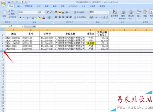 1、打開表格,選中起始行。如圖: