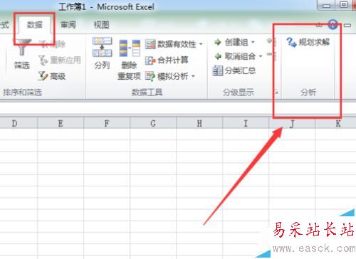 6、“規劃求解加載項”添加好之后,我們可以在其所在位置如下:功能區“數據”選項卡的“分析”組中。如圖所示;