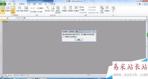 4、點擊【歡迎使用“分頁預(yù)覽”視圖】界面的【確定】按鈕。分頁預(yù)覽設(shè)置成功。