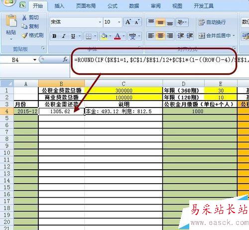 1、計算公積金逐月還貸,每月需還款的金額:在單元格B4,使用公式