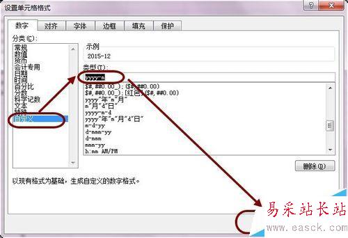 4、在自定義中,修改為yyyy-m,這樣的格式。