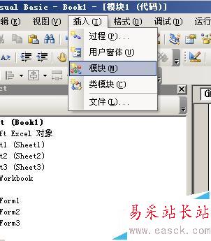 3、進(jìn)入到VB編輯器以后,在VB編輯器的菜單選項(xiàng)中的插入菜單下,選擇插入模塊。