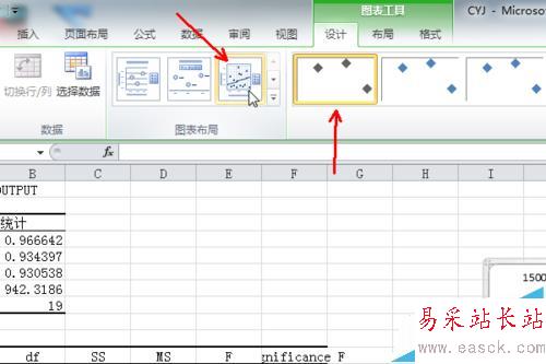 7、在圖表工具里面的圖表布局中選擇“布局3”,圖標樣式選擇第一個黑白色