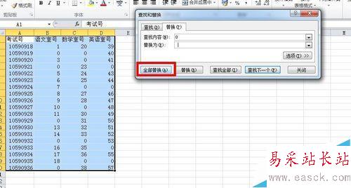 6、最后得到最終的效果,零已經全部不見,這樣就可以明顯的看出哪個課室的哪個同學沒有參加考試