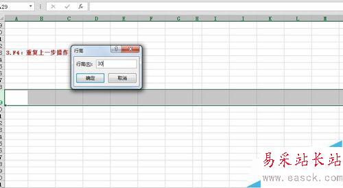 6、用F4鍵復(fù)制行高列寬:首先設(shè)置一個你需要的行高,如圖所示我這里設(shè)置的是30,然后選擇其他行,點(diǎn)擊F4,你會發(fā)現(xiàn)被點(diǎn)擊的行都變寬了,并且其行高都是30。