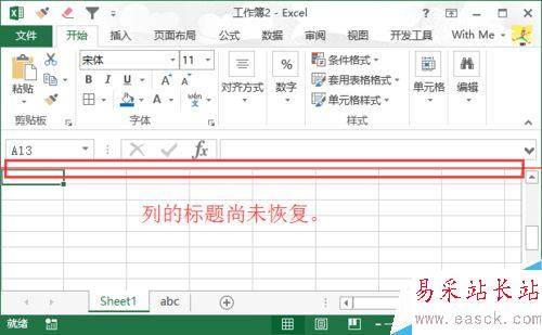 4、設置后,工具欄,編輯欄都已經恢復,但是仍舊沒有顯示標題欄,就是我們常說的A列B列,行1行2等。