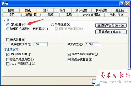 注意:因為跨工作表引用,因為數據都是引用其它表的鏈接,所以選項中的自動重算功能必須打開,要不數據容易出錯喲。