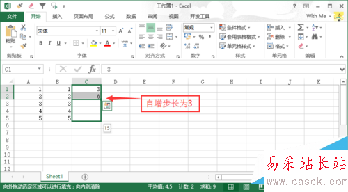 第五步:以上均為填充步長(zhǎng)為1的自增序列,將A1、A2單元格分別設(shè)置為3和6,則可完成自增步長(zhǎng)為3的序列。